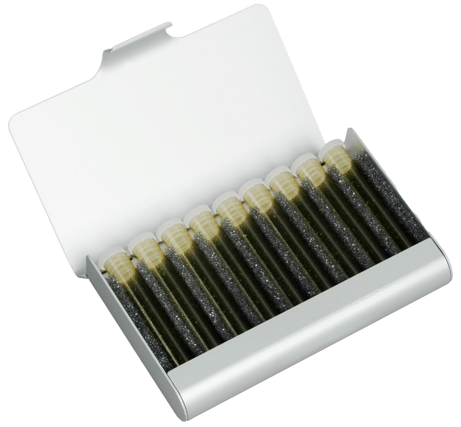 Alu-Reiseapotheke mit Schaumstoffeinlage für 9 oder 17 Globuli Gläser