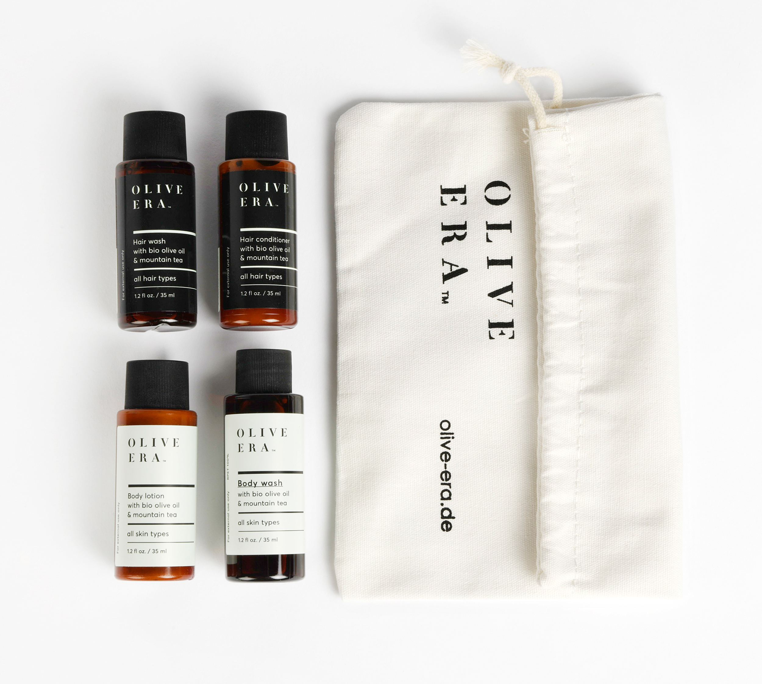 OLIVE ERA Travel Set - 4 Minigrößen Bodywash, Body Lotion, Hair Wash und Hair Conditioner