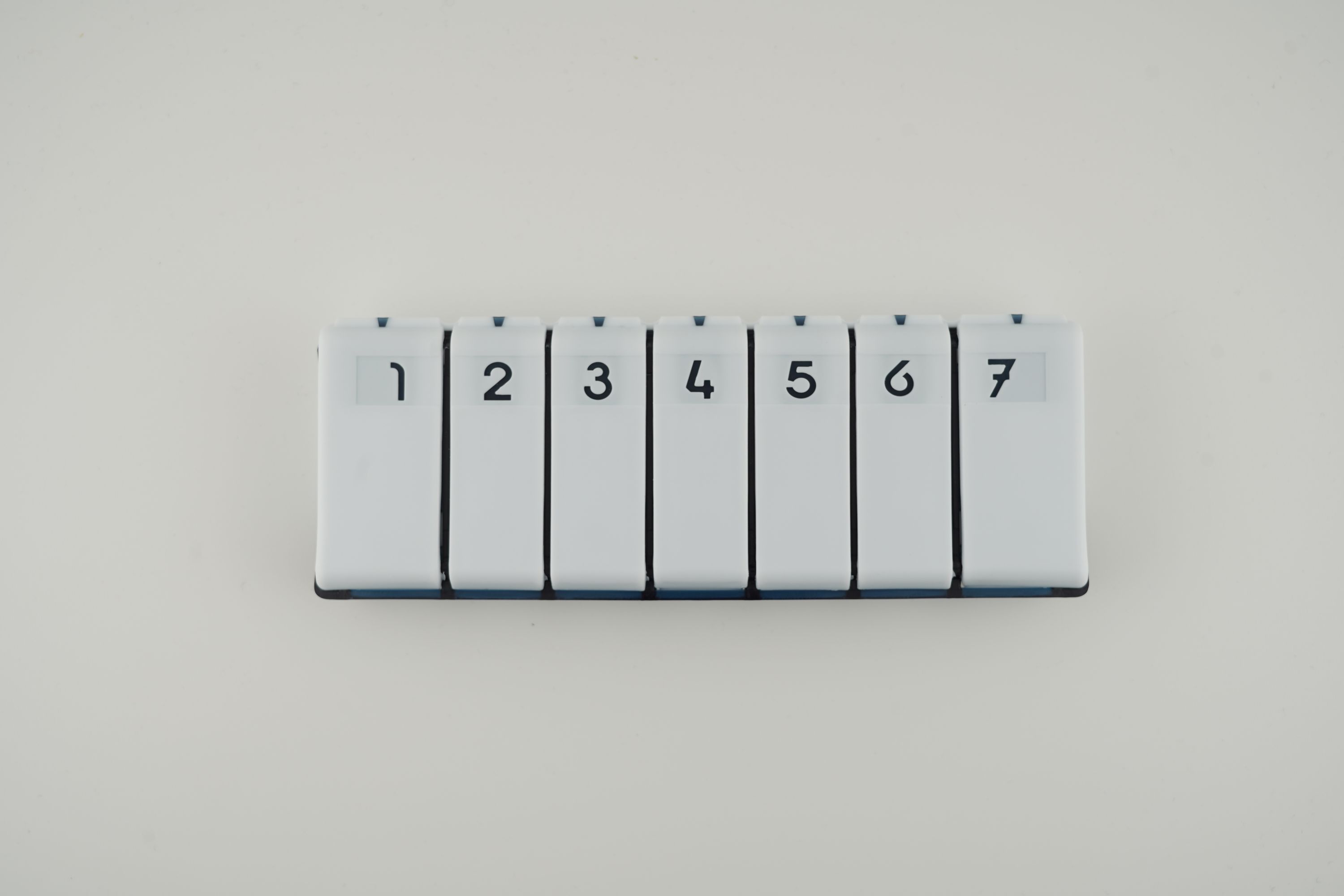 Die Box wird einmal pro Woche befüllt. Perfekt für Senioren, aber auch für Schulkinder, mit großer Tagesnummerierung. Die Deckel des Medikamentendosierers lassen sich auch bei motorischen Problemen leicht aufdrücken. Ein idealer Reisebegleiter für unterwegs, pflegeleicht und leicht zu reinigen. Die neutralen Farben Weiß und Marineblau passen sich stilsicher jeder Taschenumgebung an.