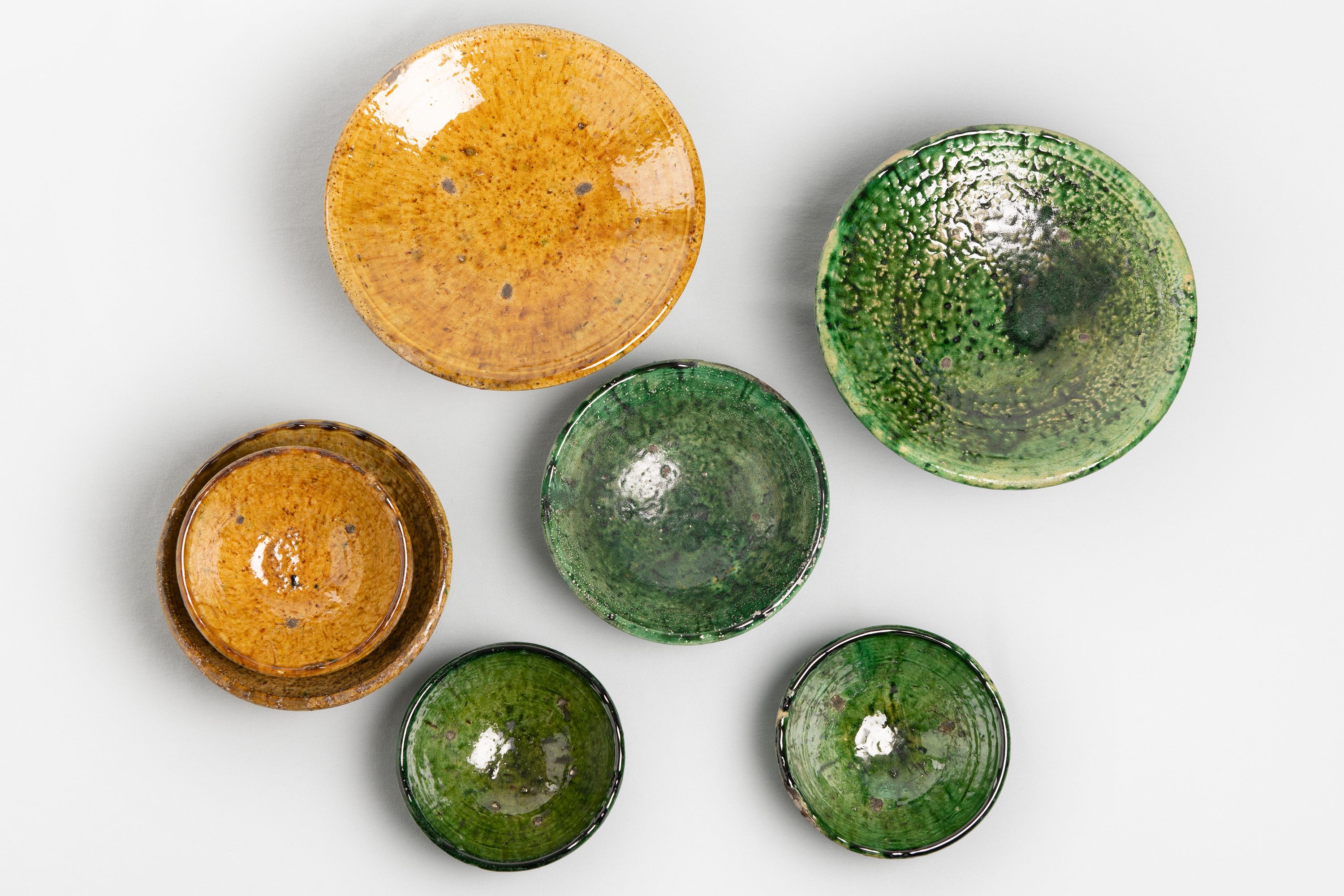 Erhältlich in den Größen Ø 15 cm oder Ø 20 cm, bringt sie mit ihrer charakteristischen Glasur in sattes Grün oder warmem Ocker den unverwechselbaren Charme des Orients auf deinen Tisch.